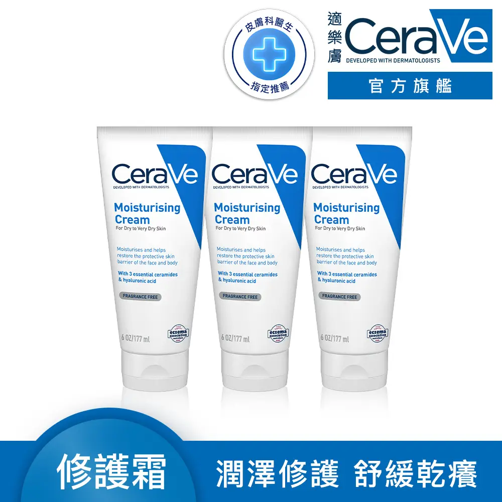 【CeraVe 適樂膚】長效潤澤修護霜177ml(3入/臉部身體乳霜)