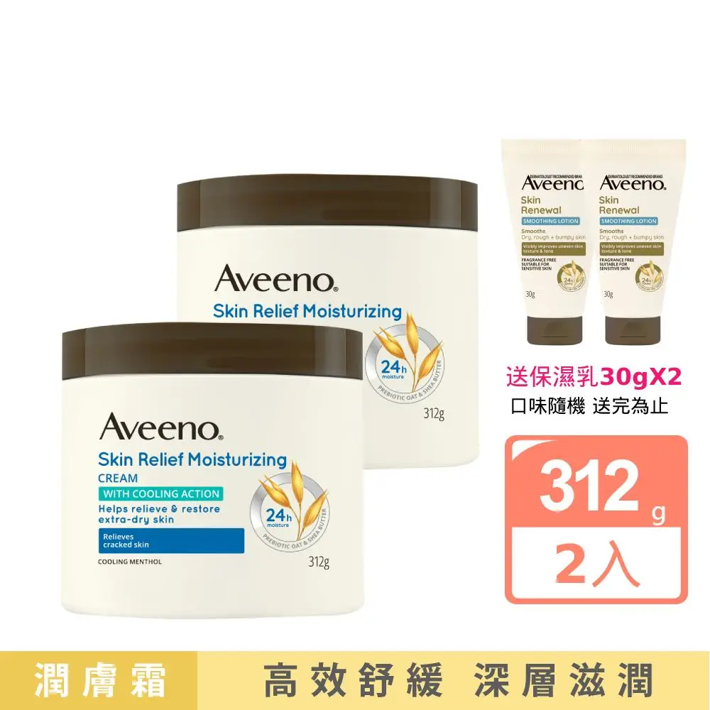 【Aveeno 艾惟諾】燕麥高效舒緩潤膚霜312gx2(修護霜/身體乳/保濕乳液)